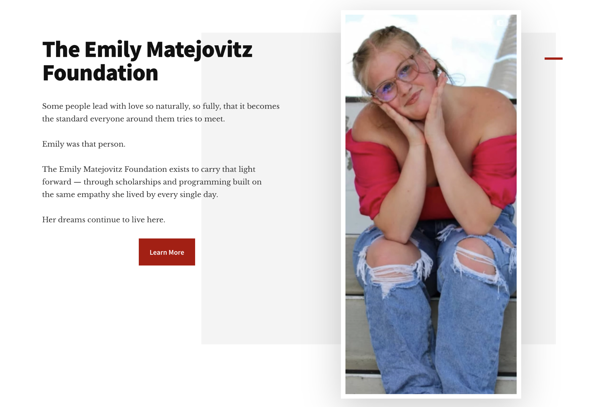 I am so beyond proud to announce that with Emily's family, we have founded The Emily Matejovitz Foundation, a nonprofit dedicated to honoring Emily's memory for years to come.